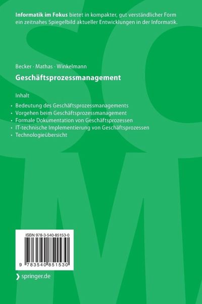 Dieses Buch macht in einer kompakten Darstellung mit den grundlegenden Prinzipien der Prozessmodellierung vertraut und zeigt, auf welche Weise sie sich in modernen IT-Systemen umsetzen lassen. Dabei wird von den Modellierungskonzepten eine Brücke zu den technischen Darstellungsformen, Standards (z.B. UML, BPMN, WS-BPEL, XPDL) und deren Implementierung geschlagen.