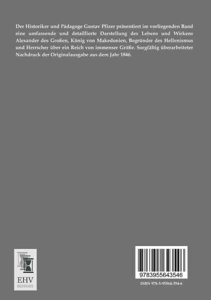 Der Historiker und Pädagoge Gustav Pfizer präsentiert im vorliegenden Band eine umfassende und detaillierte Darstellung des Lebens und Wirkens Alexander des Großen, König von Makedonien, Begründer des Hellenismus und Herrscher über ein Reich von immenser Größe. Sorgfältig überarbeiteter Nachdruck der Originalausgabe aus dem Jahr 1846.