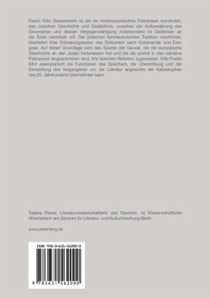 Danilo Kiss Gesamtwerk ist als ein mnemopoetisches Palimpsest konstruiert, das zwischen Geschichte und Gedächtnis, zwischen der Aufbewahrung des Gewesenen und dessen Vergegenwärtigung insbesondere im Gedenken an die Toten vermitteln will. Der jüdischen hermeneutischen Tradition verpflichtet, überliefert Kiss Erinnerungstextur das Dokument samt Kommentar und Exegese. Auf dieser Grundlage wird den Spuren der Gewalt, die die europäische Geschichte an den Juden hinterlassen hat und die als solche in das narrative Palimpsest eingeschrieben sind, ihre konkrete Referenz zugewiesen. Kiss Poetik führt exemplarisch die Funktionen des Speichers, der Übermittlung und der Sinnstiftung des Vergangenen vor, die Literatur angesichts der Katastrophen des 20. Jahrhunderts übernehmen kann.