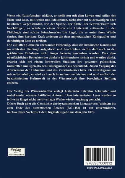 Dieses Buch über die Geschichte der byzantinischen Literatur von Justinian bis zum Ende des oströmischen Reiches (527-1453) ist ein unveränderter, hochwertiger Nachdruck der Originalausgabe aus dem Jahr 1891.
