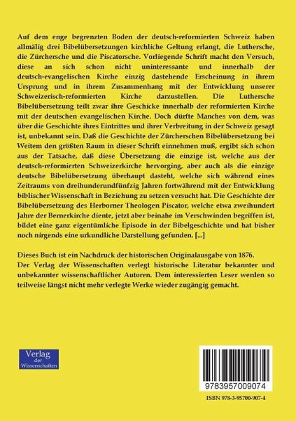 Auf dem enge begrenzten Boden der deutsch-reformierten Schweiz haben allmälig drei Bibelübersetzungen kirchliche Geltung erlangt, die Luthersche, die Zürchersche und die Piscatorsche. Vorliegende Schrift macht den Versuch, diese an sich schon nicht uninteressante und innerhalb der deutsch-evangelischen Kirche einzig dastehende Erscheinung in ihrem Ursprung und in ihrem Zusammenhang mit der Entwicklung unserer Schweizerisch-reformierten Kirche darzustellen. Die Luthersche Bibelübersetzung teilt zwar ihre Geschicke innerhalb der reformierten Kirche mit der deutschen evangelischen Kirche. Doch dürfte Manches von dem, was über die Geschichte ihres Eintrittes und ihrer Verbreitung in der Schweiz gesagt ist, unbekannt sein. Daß die Geschichte der Zürcherschen Bibelübersetzung bei Weitem den größten Raum in dieser Schrift einnehmen muß, ergibt sich schon aus der Tatsache, daß diese Übersetzung die einzige ist, welche aus der deutsch-reformierten Schweizerkirche hervorging, aber auch alsdie einzige deutsche Bibelübersetzung überhaupt dasteht, welche sich während eines Zeitraums von dreihunderundfünfzig Jahren fortwährend mit der Entwicklung biblischer Wissenschaft in Beziehung zu setzen versucht hat. Die Geschichte der Bibelübersetzung des Herborner Theologen Piscator, welche etwa zweihundert Jahre der Bernerkirche diente, jetzt aber beinahe im Verschwinden begriffen ist, bildet eine ganz eigentümliche Episode in der Bibelgeschichte und hat bisher noch nirgends eine urkundliche Darstellung gefunden. [...]