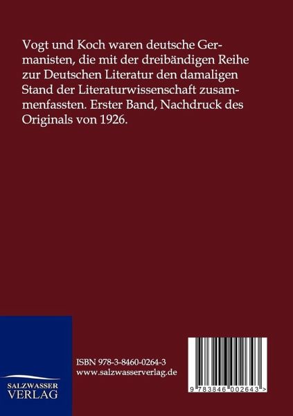 Vogt und Koch waren deutsche Germanisten, die mit der dreibändigen Reihe zur Deutschen Literatur den damaligen Stand der Literaturwissenschaft zusammenfassten. Erster Band, Nachdruck des Originals von 1926.