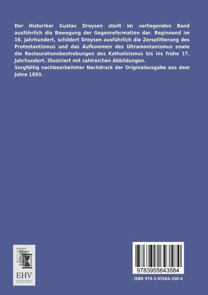 Der Historiker Gustav Droysen stellt im vorliegenden Band ausführlich die Bewegung der Gegenreformation dar. Beginnend im 16. Jahrhundert, schildert Droysen ausführlich die Zersplitterung des Protestantismus und das Aufkommen des Ultramontanismus sowie die Restaurationsbestrebungen des Katholizismus bis ins frühe 17. Jahrhundert. Illustriert mit zahlreichen Abbildungen.