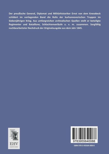Der preußische General, Diplomat und Militärhistoriker Ernst von dem Knesebeck schildert im vorliegenden Band die Rolle der kurhannoverischen Truppen im Siebenjährigen Krieg. Aus umfangreichen archivalischen Quellen stellt er beteiligte Regimenter und Bataillone, Schlachtenverläufe u. v. m. zusammen. Sorgfältig nachbearbeiteter Nachdruck der Originalausgabe aus dem Jahr 1845.
