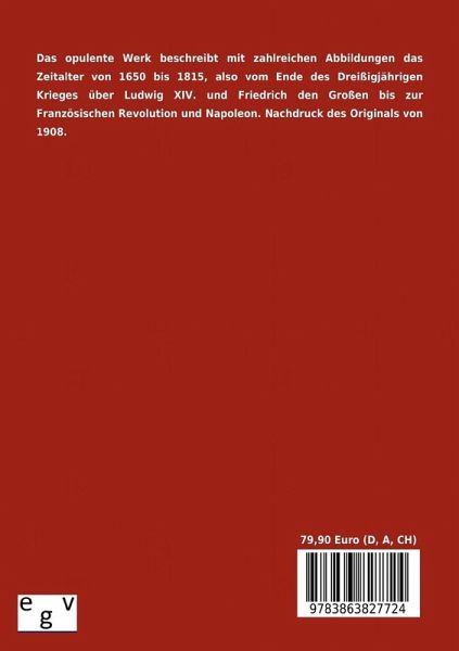 Das opulente Werk beschreibt mit zahlreichen Abbildungen das Zeitalter von 1650 bis 1815, also vom Ende des Dreißigjährigen Krieges über Ludwig XIV. und Friedrich den Großen bis zur Französischen Revolution und Napoleon. Nachdruck des Originals von 1908.