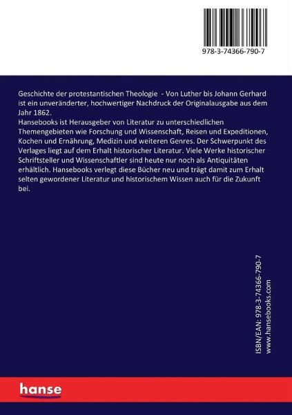 Geschichte der protestantischen Theologie - Von Luther bis Johann Gerhard ist ein unveränderter, hochwertiger Nachdruck der Originalausgabe aus dem Jahr 1862.