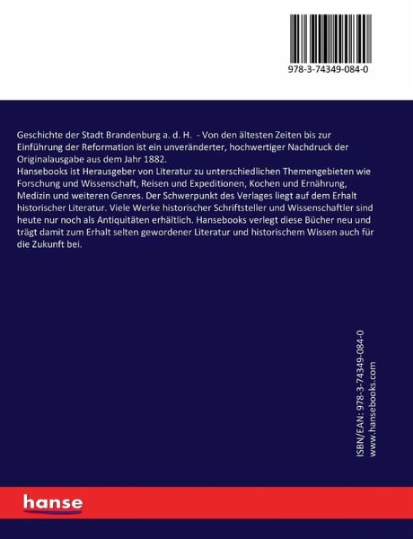 Geschichte der Stadt Brandenburg a. d. H. - Von den ältesten Zeiten bis zur Einführung der Reformation ist ein unveränderter, hochwertiger Nachdruck der Originalausgabe aus dem Jahr 1882.