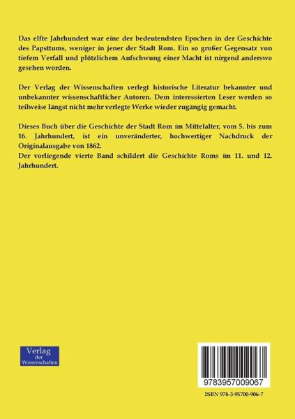 Der vorliegende vierte Band schildert die Geschichte Roms im 11. und 12. Jahrhundert.