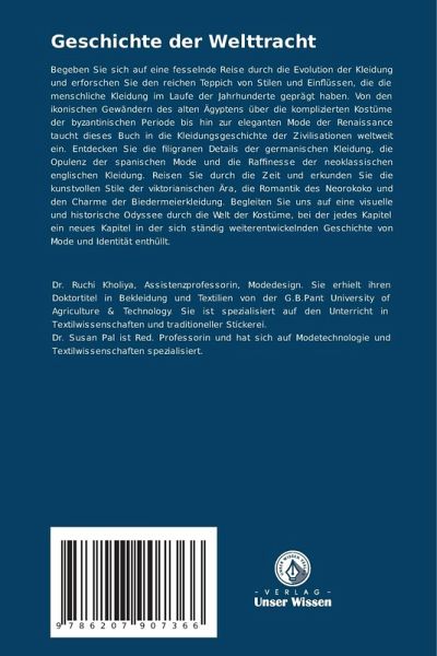 Begeben Sie sich auf eine fesselnde Reise durch die Evolution der Kleidung und erforschen Sie den reichen Teppich von Stilen und Einflüssen, die die menschliche Kleidung im Laufe der Jahrhunderte geprägt haben. Von den ikonischen Gewändern des alten Ägyptens über die komplizierten Kostüme der byzantinischen Periode bis hin zur eleganten Mode der Renaissance taucht dieses Buch in die Kleidungsgeschichte der Zivilisationen weltweit ein. Entdecken Sie die filigranen Details der germanischen Kleidung, die Opulenz der spanischen Mode und die Raffinesse der neoklassischen englischen Kleidung. Reisen Sie durch die Zeit und erkunden Sie die kunstvollen Stile der viktorianischen Ära, die Romantik des Neorokoko und den Charme der Biedermeierkleidung. Begleiten Sie uns auf eine visuelle und historische Odyssee durch die Welt der Kostüme, bei der jedes Kapitel ein neues Kapitel in der sich ständig weiterentwickelnden Geschichte von Mode und Identität enthüllt.