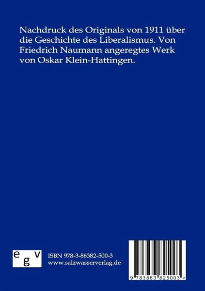 Nachdruck des Originals von 1912 über die Geschichte des deutschen Liberalismus. Von Friedrich Naumann inspiriertes Werk von Oscar Klein-Hattingen.