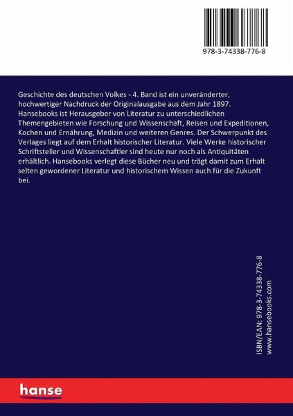 Geschichte des deutschen Volkes - 4. Band ist ein unveränderter, hochwertiger Nachdruck der Originalausgabe aus dem Jahr 1897.