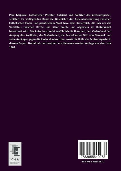 Paul Majunke, katholischer Priester, Publizist und Politiker der Zentrumspartei, schildert im vorliegenden Band die Geschichte der Auseinandersetzung zwischen katholischer Kirche und preußischem Staat bzw. dem Kaiserreich, die sich um das Verhältnis zwischen Kirche und Staat drehte und allgemein als Kulturkampf bezeichnet wird. Der Autor beschreibt ausführlich die Ursachen, den Verlauf und den Ausgang des Konfliktes, die Maßnahmen, die Reichskanzler Otto von Bismarck und seine Anhänger gegen die Kirche durchsetzten, sowie die Rolle der Zentrumspartei in diesem Disput. Nachdruck der posthum erschienenen zweiten Auflage aus dem Jahr 1902.