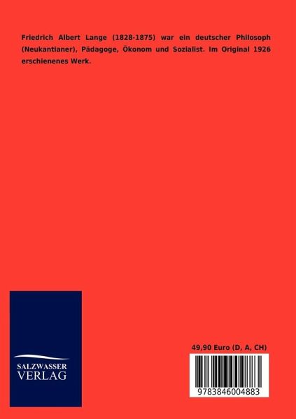 Friedrich Albert Lange (1828-1875) war ein deutscher Philosoph (Neukantianer), Pädagoge, Ökonom und Sozialist. Im Original 1926 erschienenes Werk.