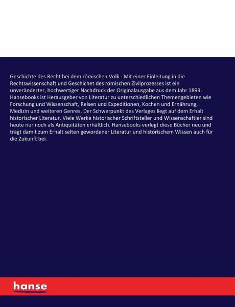 Geschichte des Recht bei dem römischen Volk - Mit einer Einleitung in die Rechtswissenschaft und Geschichet des römischen Zivilprozesses ist ein unveränderter, hochwertiger Nachdruck der Originalausgabe aus dem Jahr 1893.