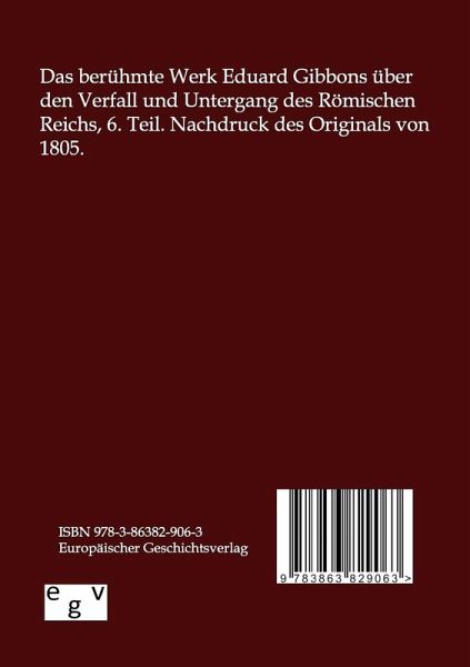 Das berühmte Werk Eduard Gibbons über den Verfall und Untergang des Römischen Reichs, 6. Teil. Nachdruck des Originals von 1805.