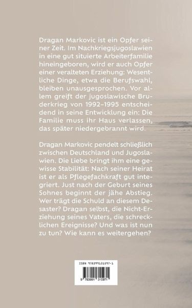 Dragan Markovic ist ein Opfer seiner Zeit. Im Nachkriegsjugoslawien in eine gut situierte Arbeiterfamilie hineingeboren, wird er auch Opfer einer veralteten Erziehung: Wesentliche Dinge, etwa die Berufswahl, bleiben unausgesprochen. Vor allem greift der jugoslawische Bruderkrieg von 1992-1995 entscheidend in seine Entwicklung ein: Die Familie muss ihr Haus verlassen, das später niedergebrannt wird. Dragan Markovic pendelt schließlich zwischen Deutschland und Jugoslawien. Die Liebe bringt ihm eine gewisse Stabilität: Nach seiner Heirat ist er als Pflegefachkraft gut integriert. Just nach der Geburt seines Sohnes beginnt der jähe Abstieg. Wer trägt die Schuld an diesem Desaster? Dragan selbst, die Nicht-Erziehung seines Vaters, die schrecklichen Ereignisse? Und was ist nun zu tun? Wie kann es weitergehen?