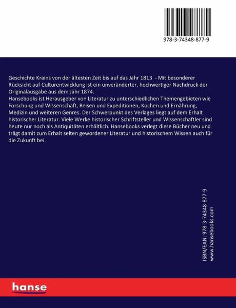 Geschichte Krains von der ältesten Zeit bis auf das Jahr 1813 - Mit besonderer Rücksicht auf Culturentwicklung ist ein unveränderter, hochwertiger Nachdruck der Originalausgabe aus dem Jahr 1874.