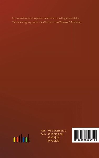 Reproduktion des Originals: Geschichte von England seit der Thronbesteigung Jakob¿s des Zweiten. von Thomas B. Macaulay