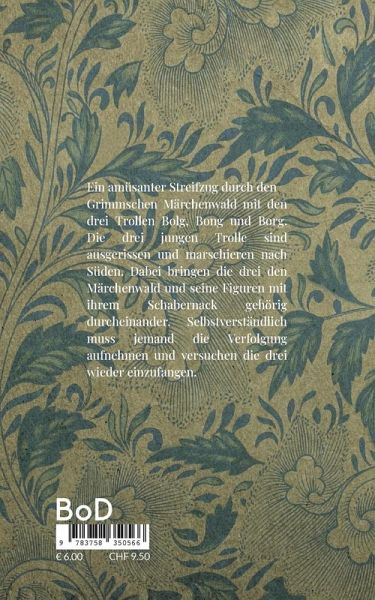 Ein amüsanter Streifzug durch den Grimmschen Märchenwald mit den drei Trollen Bolg, Bong und Borg. Die drei jungen Trolle sind ausgerissen und marschieren nach Süden. Dabei bringen sie den Märchenwald und seine Figuren gehörig durcheinander. Selbstverständlich muss jemand die Verfolgung aufnehmen und versuchen die drei wieder einzufangen.