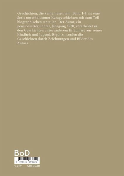Geschichten, die keiner lesen will, Band 1-4, ist eine Serie unterhaltsamer Kurzgeschichten mit zum Teil biographischen Anteilen. Der Autor, ein pensionierter Lehrer, Jahrgang 1938, verarbeitet in den Geschichten unter anderem Erlebnisse aus seiner Kindheit und Jugend. Ergänzt werden die Geschichten durch Zeichnungen und Bilder des Autors.