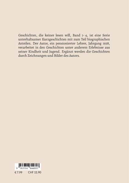 Geschichten, die keiner lesen will, Band 1-4, ist eine Serie unterhaltsamer Kurzgeschichten mit zum Teil biographischen Anteilen. Der Autor, ein pensionierter Lehrer, Jahrgang 1938, verarbeitet in den Geschichten unter anderem Erlebnisse aus seiner Kindheit und Jugend. Ergänzt werden die Geschichten durch Zeichnungen und Bilder des Autors.