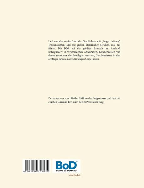 Und nun der zweite Band der Geschichten mit "langer Leitung", Trassenskizzen. Mal mit groben literarischen Strichen, mal mit feinen. Die DDR auf der größten Baustelle im Ausland, untergliedert in verschiedenen Abschnitten. Geschehnissen von denen meist nur die Beteiligten wussten, Geschehnissen in den achtziger Jahren in der damaligen Sowjetunion.