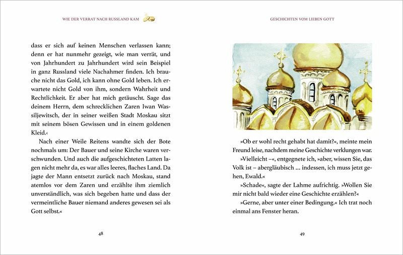 Das Märchen von den Händen Gottes; Der fremde Mann; Wie der Verrat nach Russland kam; Wie der Fingerhut dazu kam, der liebe Gott zu sein; Ein Märchen vom Tod; Eine Geschichte, dem Dunkel erzählt.