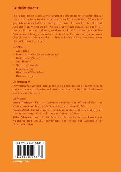 Die Rehabilitation des in Verruf geratenen Subjekts als einzig bestimmender historischer Akteur ist der zentrale Anspruch dieses Buches. Wesentliche geschichtswissenschaftliche Kategorien wie historische Wirklichkeit, Geschichte als Wissenschaft, Quellen und Medien werden darin nicht als positive Phänomene verkannt, sondern als Produkte einer dialektischen Auseinandersetzung zwischen dem Subjekt und seiner wahrgenommenen Umwelt erfasst. Damit werden in diesem Buch die Ecksteine einer neuen Geschichtstheorie erläutert.