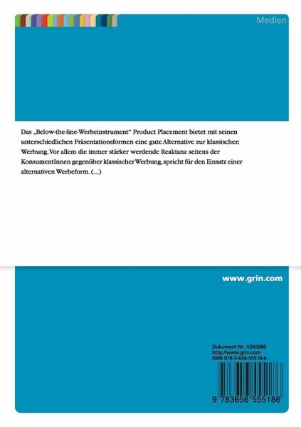 Bachelorarbeit aus dem Jahr 2013 im Fachbereich Medien / Kommunikation - Public Relations, Werbung, Marketing, Social Media, Note: 1,0, Universität Wien (Publizistik- und Kommunikationswissenschaft), Sprache: Deutsch, Abstract: Das "Below-the-line-Werbeinstrument" Product Placement bietet mit seinen unterschiedlichen Präsentationsformen eine gute Alternative zur klassischen Werbung. Vor allem die immer stärker werdende Reaktanz seitens der KonsumentInnen gegenüber klassischer Werbung, spricht für den Einsatz einer alternativen Werbeform. Durch das Platzieren von Markenprodukten in einem geeigneten Film oder Serie wird ein Reaktanzeffekt vermieden und somit Menschen erreicht, die über klassische Werbung schwer oder gar nicht zu erreichen sind. Außerdem kann ein optimal durchgeführtes Product Placement eine hohe Glaubwürdigkeit seitens der RezipientInnen aufweisen.Einen weiteren Vorteil bietet die Markenexklusivität. Das in die Handlung integrierte Produkt muss sich nicht von vielen anderen Produkten abheben, wie das etwa bei der klassischen TV-Werbung der Fall ist.Durch die Wahl des passenden Films, ist eine genaue Zielgruppenansprache möglich. Vergleicht man Product Placement mit der klassischen Fernseh-Werbung, zeigt dieses einen bei weitem geringeren Streuverlust. Einerseits werden mit Product Placement auch Menschen erreicht, die in der Regel Werbung ablehnen bzw. nur schwer von der Werbung erreicht werden können und andererseits besteht bei Product Placement nicht die Gefahr des Umschaltens.Einen ebenso wichtigen Faktor stellen die Kosten dar. Aufgrund der relativ hohen Reichweite ist das Preis-Leistungs-Verhältnis von Product Placement ein sehr gutes. Ist eine Cross-Promotion oder ein Tie-In vereinbart, können Filmsequenzen, in denen das Produkt platziert wurde, sogar als Werbespot oder Printmotiv verwendet werden, ohne dass dafür weitere Kosten anfallen.Ob die gewünschte Werbewirkung eintritt, hängt von etzierungsart, Häufigkeit der Platzierungen, Aufmerksamkeit der ZuseherInnen, Markenbekanntheit, ...). Zusammengefasst lässt sich aber sagen, dass es sich, unter Berücksichtigung dieser Faktoren, durchaus lohnt, Product Placement als Werbeinstrument zu nutzen.