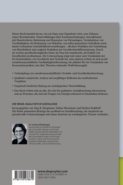 Dieses Buch handelt davon, wie ein Haus zum Eigenheim wird, zum Zuhause seiner Bewohnenden. Besonders bei der Anschaffung und Nutzung von Wärmetechnologien wird deutlich, wie eng die Aneignung neuer Technik in Privathaushalten verwoben ist mit der Herausbildung von Identitäten von Paaren und Familien. Paarerzählungen über Kaufentscheidungen, Interaktionen mit Handwerkern, Bedienung und Reparatur von Heizanlagen, Verständnisse von Nachhaltigkeit, die Bedeutung von Holzöfen, von selbst gemachtem Scheitholz sowie damit verbundene Gemütlichkeitsvorstellungen - all diese Praktiken der Entstehung von Häuslichkeit sind zugleich Praktiken der Geschlechterdifferenzierung. Durch sie werden geschlechtsungleiche Paare als Paar hervorgebracht, als Einheit von Geschlechtsverschiedenen. Die Untersuchung trägt zum einen zum Verständnis der Ko-Konstruktion von Geschlecht und Technik bei. Zum anderen richtet sie sich an die sozialwissenschaftliche Nachhaltigkeitsforschung: Sie plädiert für einVerständnis von Konsumdynamiken, das über Theorien rationaler Wahl hinausgeht.