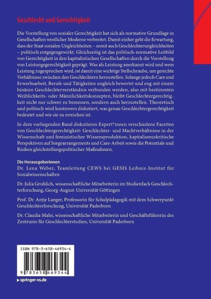 In dem vorliegenden Band diskutieren Expert_innen verschiedene Facetten von Geschlechtergerechtigkeit: Geschlechter- und Machtverhältnisse in der Wissenschaft und feministischer Wissensproduktion, kapitalismuskritische Perspektiven auf Sorgearrangements und Care-Arbeit sowie die Potentiale und Risiken gleichstellungspolitischer Maßnahmen.