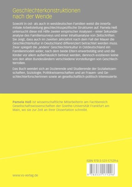 Zwanzig Jahre nach dem Mauerfall eröffnet Pamela Heß mit ihrer gründlichen Analyse über "Geschlechtsspezifische Konstruktionen in Ost und West seit der Wende" neue und aktuelle Perspektiven auf das Verhältnis von Ost- und We- deutschland und belegt empirisch, dass in der Geschlechterfrage - trotz vieler Gemeinsamkeiten - noch längst nicht von einer gemeinsamen politischen Kultur in Deutschland die Rede sein kann. Ihre Untersuchung macht deutlich, wie sehr Einflüsse der DDR-Sozialisation in Ostdeutschland und umgekehrt der BRD- Sozialisation im Westen bis heute fortwirken. Es bestehen unterschiedliche V- stellungen hinsichtlich Erwerbsarbeit, Familie und Arbeitsteilung, und sie w- den auch gelebt. Gleichzeitig zeigt sich - und das ist aus gesellschaftspolitischer Sicht mehr als brisant! -, dass es trotzdem eine große Ähnlichkeit in Ost und West bei den Vorstellungen über tradierte Geschlechterrollen, vor allem über die Zuständigkeit von Frauen für die Privatsphäre und Hausarbeit gibt. Auch der traditionelle Wirkungskreis der Männer wird bis heute kaum, bzw. nicht tangiert und ist immer noch auf die Erwerbsarbeit konzentriert. Mit diesen Befunden kann sich das vorliegende Buch nicht nur in wichtige Debatten über politische Kultur einmischen, sondern es liefert mit dem gewählten thematischen Fokus der Geschlechterverhältnisse auch einen wesentlichen Beitrag zu Fragen der - schlechtergerechtigkeit. Pamela Heß geht in ihrer Untersuchung den gesellschaftlichen Rollen- schreibungen und Rollenerwartungen in Ost- und Westdeutschland mit einer breit angelegten empirischen Analyse nach. Zugrunde gelegt werden dabei eine statistische Auswertung des Familiensurveys sowie eine qualitative Inhaltsana- se von Publikumszeitschriften.