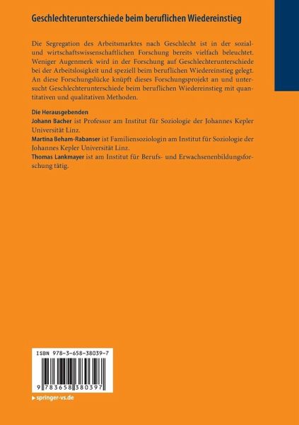 Die Geschlechtersegregation am Arbeitsmarkt und die sich dadurch ergebenden Unterschiede zwischen Frauen und Männer in Hinblick auf Tätigkeitsfelder, Positionen, Stundenausmaß, Einkommen, Aufstiegschancen usw. sind in der sozial- und wirtschaftswissenschaftlichen Forschung vielfach beleuchtet worden. Die vorliegende Studie befasst sich nun schwerpunktmäßig mit möglichen Geschlechterunterschieden beim beruflichen Wiedereinstieg.