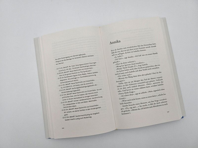 Isabelle und Annika haben verlernt, miteinander zu sprechen. Nun, am Sterbebett ihrer Mutter, müssen sie es tun. Auch ihre Tante Dagmar ist da. Drei Frauen, drei Einzelkämpferinnen. Und noch während sie sich an das Gefühl herantasten, als Familie zusammenzugehören, launcht ein internationaler Tech-Milliardär seine Idee einer revolutionär neuen Gemeinschaft. Er will der Gesellschaft ein Update verpassen. Per App. Und alle können sich dabei einbringen. Der Start für das Projekt soll ausgerechnet hier bei ihnen sein: in Weimar. Schon Tage später sind die drei Teil einer öffentlichen Debatte. Denn was da auf sie zukommt, klingt so vielversprechend wie rätselhaft. Ist das der Neustart für die Demokratie? Oder der Anfang vom Ende?