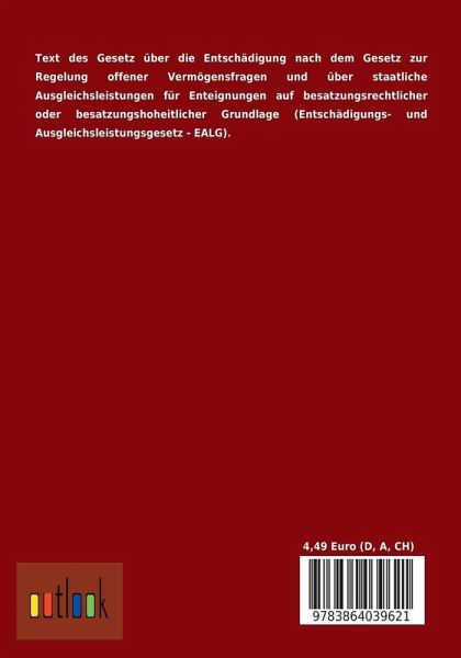 Text des Gesetz über die Entschädigung nach dem Gesetz zur Regelung offener Vermögensfragen und über staatliche Ausgleichsleistungen für Enteignungen auf besatzungsrechtlicher oder besatzungshoheitlicher Grundlage (Entschädigungs- und Ausgleichsleistungsgesetz - EALG).