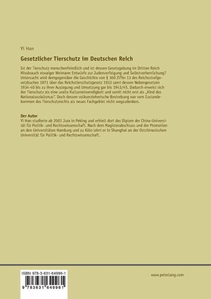 Ist der Tierschutz menschenfeindlich und ist dessen Gesetzgebung im Dritten Reich Missbrauch etwaiger Weimarer Entwürfe zur Judenverfolgung und Selbstverherrlichung? Untersucht wird demgegenüber die Geschichte von