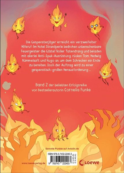 Die Gespensterjäger erreicht ein verzweifelter Hilferuf: Im Hotel Strandperle bedrohen unberechenbare Feuergeister die Gäste! Voller Tatendrang und beladen mit allerlei Anti-Spuk-Ausrüstung, rücken Tom, Hedwig Kümmelsaft und Hugo an, um dem Schrecken ein Ende zu bereiten. Doch der Auftrag wird zu einer gespenstisch-großen Herausforderung ...