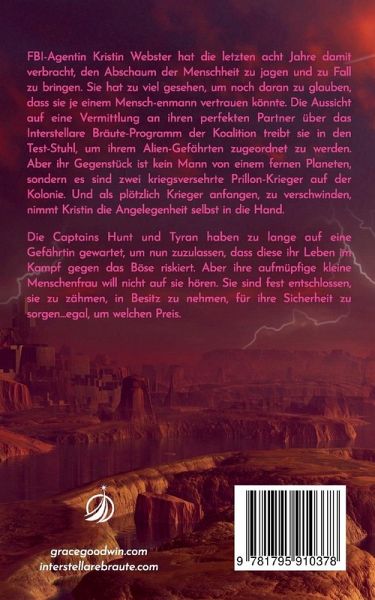 FBI-Agentin Kristin Webster hat die letzten acht Jahre damit verbracht, den Abschaum der Menschheit zu jagen und zu Fall zu bringen. Sie hat zu viel gesehen, um noch daran zu glauben, dass sie je einem Menschenmann vertrauen könnte. Die Aussicht auf eine Vermittlung an ihren perfekten Partner über das Interstellare Bräute-Programm der Koalition treibt sie in den Test-Stuhl, um ihrem Alien-Gefährten zugeordnet zu werden. Aber ihr Gegenstück ist kein Mann von einem fernen Planeten, sondern es sind zwei kriegsversehrte Prillon-Krieger auf der Kolonie. Und als plötzlich Krieger anfangen, zu verschwinden, nimmt Kristin die Angelegenheit selbst in die Hand. Die Captains Hunt und Tyran haben zu lange auf eine Gefährtin gewartet, um nun zuzulassen, dass diese ihr Leben im Kampf gegen das Böse riskiert. Aber ihre aufmüpfige kleine Menschenfrau will nicht auf sie hören. Sie sind fest entschlossen, sie zu zähmen, in Besitz zu nehmen, für ihre Sicherheit zu sorgen...egal, um welchen Preis