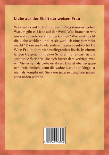Im vorliegenden Buch schreibt Kim Barkmann über die Liebe aus der Sicht der weisen Frau. Welche Funktion hat die Liebe für uns Menschen? Wie geht man mit ihr um? Was können wir tun, um Liebende zu werden? Diese und viele andere Fragen werden hier beantwortet. Es geht um einen nicht alltäglichen Blickwinkel, der vieles erklärt und erhellt.