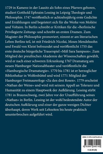 Gotthold Ephraim Lessing: Gespräche für Freimaurer. Ernst und Falk Lesefreundlicher Großdruck in 16-pt-Schrift Großformat, 210 x 297 mm Berliner Ausgabe, 2020 Durchgesehener Neusatz mit einer Biographie des Autors bearbeitet und eingerichtet von Theodor Borken Erstdruck: Wolfenbüttel bzw. Frankfurt [recte: Göttingen] 1778 (anonym). Textgrundlage ist die Ausgabe: Gotthold Ephraim Lessing: Werke. Herausgegeben von Herbert G. Göpfert in Zusammenarbeit mit Karl Eibl, Helmut Göbel, Karl S. Guthke, Gerd Hillen, Albert von Schirmding und Jörg Schönert, Band 1¿8, München: Hanser, 1970 ff. Umschlaggestaltung von Thomas Schultz-Overhage unter Verwendung des Bildes: Französischer Kupferstich, Initiation eines Suchenden, 1745. Gesetzt aus der Minion Pro, 16 pt. Über den Autor: 1729 in Kamenz in der Lausitz als Sohn eines Pfarrers geboren, studiert Gotthold Ephraim Lessing in Leipzig Theologie und Philosophie. 1747 veröffentlich er achtzehnjährig erste Gedichte und Erzählungen und begeistert sich für die Werke von Molière und Voltaire. In Berlin schreibt er Kritiken für die »Berlinische Privilegierte Zeitung« und schreibt an ersten Dramen. Zum Magister der Philosophie promoviert, nimmt er am literarischen Leben Berlins teil, ist mit Friedrich Nicolai, Moses Mendelssohn und Ewald von Kleist befreundet und veröffentlicht 1755 das erste deutsche bürgerliche Trauerspiel »Miß Sara Sampson«. Zum Mitglied der preußischen Akademie der Wissenschaften gewählt, wird er nach einer schweren Erkrankung 1767 Dramaturg am neuen Hamburger Nationaltheater und veröffentlicht die »Hamburgische Dramaturgie«. 1770 bis 1781 ist er herzoglicher Bibliothekar in Wolfenbüttel und wird 1771 Mitglied der Hamburger Freimaurerloge »Zu den drei Rosen«. 1779 erscheint »Nathan der Weise« und wird mit seinem Appell an Toleranz und Humanität zu einem Hauptwerk der Aufklärung. Lessing stirbt 1781 in Braunschweig, zwei Jahre vor der Uraufführung seines »Nathan« in Berlin. Lessing ist der wohl bedeutendste Autor der deutschen Aufklärung und einer der ganze wenigen Dichter überhaupt, deren Werk seit Lebzeiten bis heute praktisch ununterbrochen aufgeführt wird.