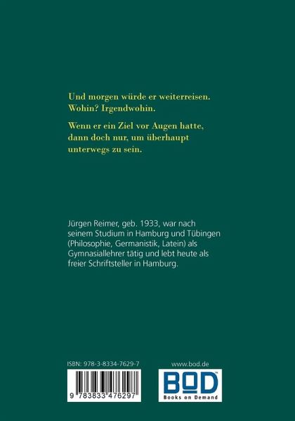 Jürgen Reimer, geboren 1933, war nach seinem Studium in Hamburg und Tübingen (Philosophie, Germanistik, Latein) als Gymnasiallehrer tätig. Von dem Autor erschienen bisher die Romane: Der Ferienschreiber (1998), Gruppenreise (2001), Jahre eines Unbehausten (2002). Der Roman "Gruppenreise" wurde 2003, der Roman "Jahre eines Unbehausten" 2006 in die Jahresbibliographie des Max Kade Zentrums für deutschsprachige Gegenwartsliteratur der Washington Universität in St. Louis / USA aufgenommen.
