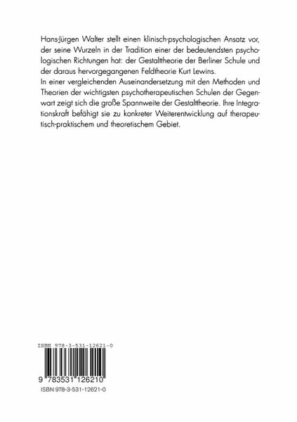 Der Autor stellt einen klinisch-psychologischen Ansatz vor, der seine Wurzeln in der Tradition einer der bedeutendsten psychologischen Richtungen hat: der Gestalttheorie der Berliner Schule und der daraus hervorgegangenen Feldtheorie Kurt Lewins.In einer vergleichenden Auseinandersetzung mit den Methoden und Theorien der wichtigsten psychotherapeutischen Schulen der Gegenwart zeigt sich die große Spannweite der Gestalttheorie. Ihre Integrationskraft befähigt sie zu konkreter Weiterentwicklung auf therapeutisch-praktischem und theoretischem Gebiet.