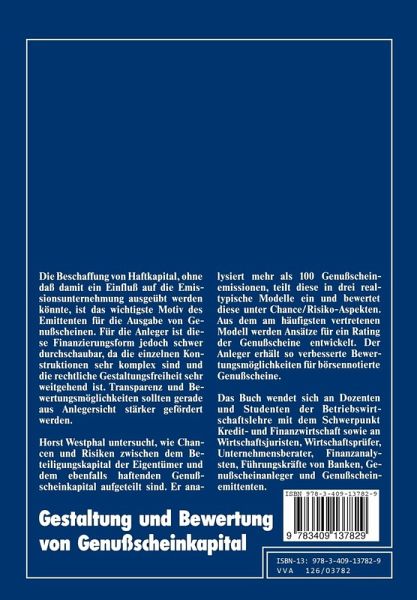 Horst Westphal untersucht, wie Chancen und Risiken zwischen dem Beteiligungskapital der Eigentümer und dem ebenfalls haftenden Genußscheinkapital aufzuteilen sind. Er entwickelt Ansätze für ein Rating der Genußscheine.