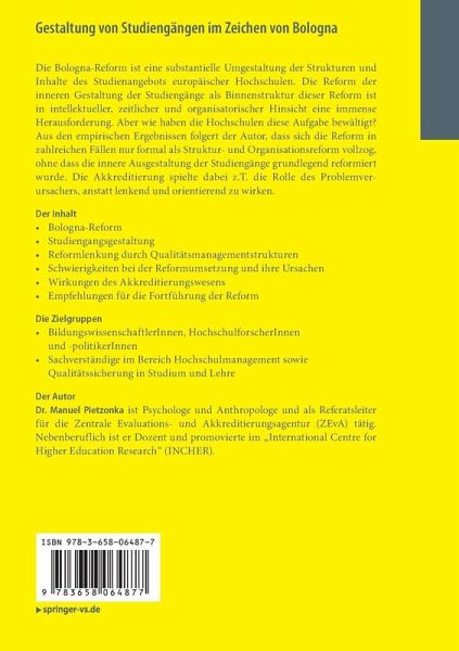 Die Bologna-Reform ist eine substantielle Umgestaltung der Strukturen und Inhalte des Studienangebots europäischer Hochschulen. Die Reform der inneren Gestaltung der Studiengänge als Binnenstruktur dieser Reform ist in intellektueller, zeitlicher und organisatorischer Hinsicht eine immense Herausforderung. Aber wie haben die Hochschulen diese Aufgabe bewältigt? Aus den empirischen Ergebnissen folgert der Autor, dass sich die Reform in zahlreichen Fällen nur formal als Struktur- und Organisationsreform vollzog, ohne dass die innere Ausgestaltung der Studiengänge grundlegend reformiert wurde. Die Akkreditierung spielte dabei z.T. die Rolle des Problemverursachers, anstatt lenkend und orientierend zu wirken.
