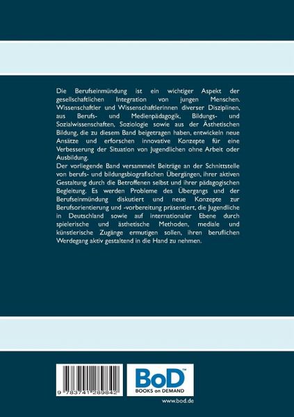 Die Berufseinmündung ist ein wichtiger Aspekt der gesellschaftlichen Integration von jungen Menschen. Wissenschaftler und Wissenschaftlerinnen diverser Disziplinen, aus Berufs- und Medienpädagogik, Bildungs- und Sozialwissenschaften, Soziologie sowie aus der Ästhetischen Bildung, die zu diesem Band beigetragen haben, entwickeln neue Ansätze und erforschen innovative Konzepte für eine Verbesserung der Situation von Jugendlichen ohne Arbeit oder Ausbildung. Der vorliegende Band versammelt Beiträge an der Schnittstelle von berufs- und bildungsbiografischen Übergängen, ihrer aktiven Gestaltung durch die Betroffenen selbst und ihrer pädagogischen Begleitung. Es werden Probleme des Übergangs und der Berufseinmündung diskutiert und neue Konzepte zur Berufsorientierung und -vorbereitung präsentiert, die Jugendliche in Deutschland sowie auf internationaler Ebene durch spielerische und ästhetische Methoden, mediale und künstlerische Zugänge ermutigen sollen, ihren beruflichen Werdegang aktiv gestaltend in die Hand zu nehmen.