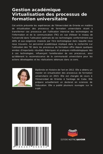 Cet article présente les expériences de l'Universidad de Oriente en matière de virtualisation des processus de formation universitaire visant à transformer ces processus par l'utilisation intensive des technologies de l'information et de la communication (TIC) en vue d'élever le niveau de l'université dans l'utilisation optimale de ces technologies conformément aux défis et aux exigences imposés par l'ère technologique dans laquelle nous nous trouvons. Le personnel académique impliqué dans la recherche sur l'utilisation des TIC dans les processus de formation offre depuis quelques années d'importants résultats théoriques et pratiques-méthodologiques liés à ces technologies, influençant l'amélioration de ces processus, ainsi qu'obtenant la reconnaissance de la communauté universitaire pour les actions développées et les réalisations obtenues dans ce sens.