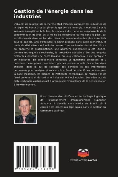 L'objectif de ce projet de recherche était d'étudier comment les industries de la région de Ponta Grossa gèrent la gestion de l'énergie. Il était basé sur le scénario énergétique brésilien, le secteur industriel étant responsable de la consommation de près de la moitié de l'électricité fournie dans le pays, qui est désormais devenue l'un des biens de consommation les plus essentiels pour la société. Afin d'atteindre l'objectif proposé dans cette recherche, la méthode déductive a été utilisée, suivie d'une recherche descriptive. En ce qui concerne la problématique, une approche quantitative a été utilisée. Comme technique de recherche, la procédure adoptée a été une enquête ciblant les industries de Ponta Grossa, où un questionnaire a été appliqué à 10 industries. Le questionnaire contenait 15 questions objectives et 2 questions descriptives pour interroger les professionnels des entreprises choisies, dans le but de collecter des données et des informations pertinentes pour analyser et conclure le scénario étudié. En ce qui concerne la base théorique, les thèmes de l'efficacité énergétique, de l'énergie et de l'environnement et du scénario industriel ont été étudiés. Les résultats de cette recherche contribueront à promouvoir l'importance de la sensibilisation à l'environnement.