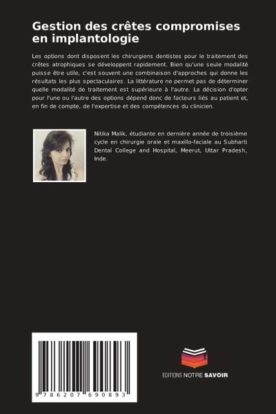 Les options dont disposent les chirurgiens dentistes pour le traitement des crêtes atrophiques se développent rapidement. Bien qu'une seule modalité puisse être utile, c'est souvent une combinaison d'approches qui donne les résultats les plus spectaculaires. La littérature ne permet pas de déterminer quelle modalité de traitement est supérieure à l'autre. La décision d'opter pour l'une ou l'autre des options dépend donc de facteurs liés au patient et, en fin de compte, de l'expertise et des compétences du clinicien.