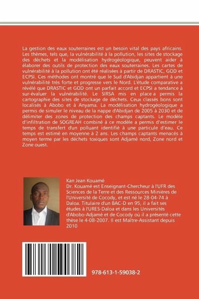 La gestion des eaux souterraines est un besoin vital des pays africains. Les thèmes, tels que, la vulnérabilité à la pollution, les sites de stockage des déchets et la modélisation hydrogéologique, peuvent aider à élaborer des outils de protection des eaux souterraines. Les cartes de vulnérabilité à la pollution ont été réalisées à partir de DRASTIC, GOD et ECPSI. Ces méthodes ont montré que le Sud d'Abidjan appartient à une vulnérabilité très forte et progresse vers le Nord. L'étude comparative a révélé que DRASTIC et GOD ont un parfait accord et ECPSI a tendance à sur-évaluer la vulnérabilité. Le SIRSA mis en place a permis la cartographie des sites de stockage de déchets. Ceux classés bons sont localisés à Abobo et à Anyama. La modélisation hydrogéologique a permis de simuler le niveau de la nappe d'Abidjan de 2005 à 2030 et de délimiter des zones de protection des champs captants. Le modèle d infiltration de SOGREAH combiné à ce modèle a permis d estimer le temps de transfert d'un polluant identifié à une particule d eau. Ce temps est estimé en moyenne à 2 ans. Les champs captants menacés à moyen terme par les déchets toxiques sont Adjamé nord, Zone nord et Zone ouest.