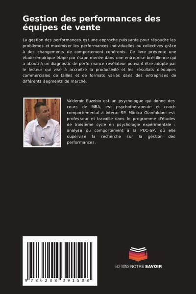 La gestion des performances est une approche puissante pour résoudre les problèmes et maximiser les performances individuelles ou collectives grâce à des changements de comportement cohérents. Ce livre présente une étude empirique étape par étape menée dans une entreprise brésilienne qui a abouti à un diagnostic de performance révélateur pouvant être adopté par le lecteur qui vise à accroître la productivité et les résultats d'équipes commerciales de tailles et de formats variés dans des entreprises de différents segments de marché.